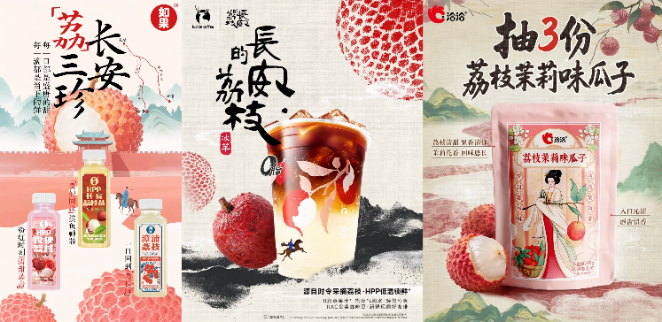 文化上,《长安的荔枝》热播,借着大热IP的声量,荔枝产品供给也更加丰富,瑞幸、霸王茶姬、茶百道、茶话弄、爷爷不泡茶、RIO、洽洽、如果、维果清、认养一头牛等品牌纷纷推出了荔枝新品。