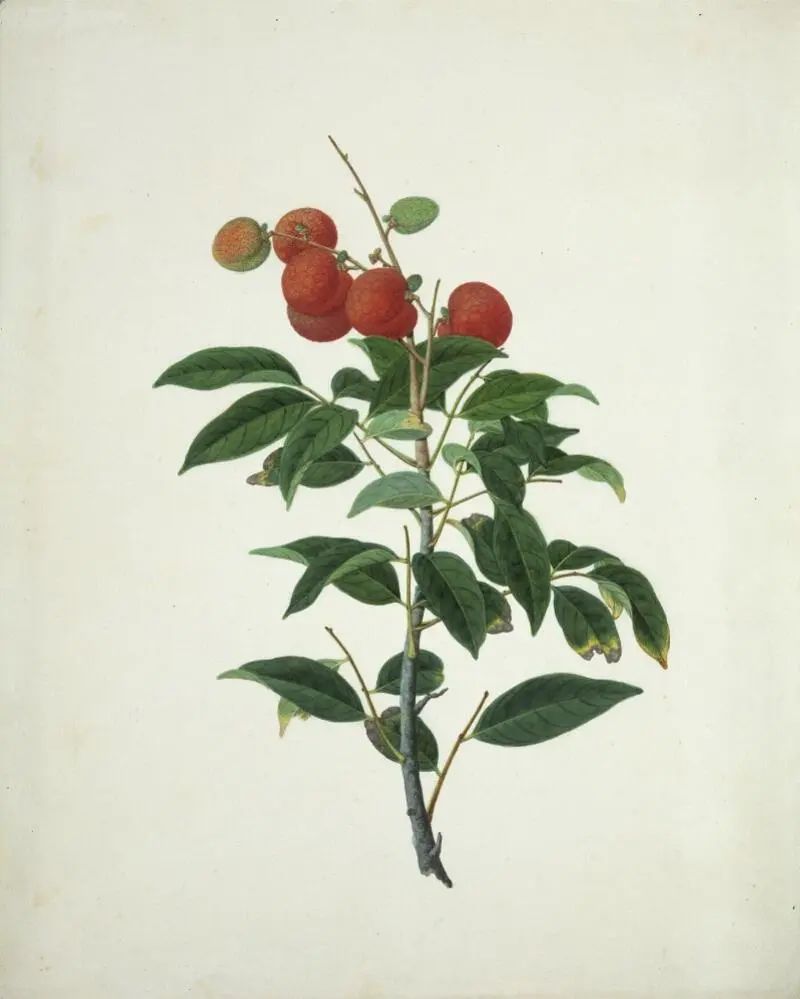 例如,十八、十九世纪,广州口岸对外贸易发达,荔枝以精美的中国外销画的形式乘着西方船舶传到了欧洲,也随着商贸活动和人员流动进入了越来越多植物学家的视野。18世纪,欧洲贵族竞相建造温室,引进海外植物,荔枝也作为“东方珍果”被多次引种,但最终因为气候限制未能成功广泛种植。