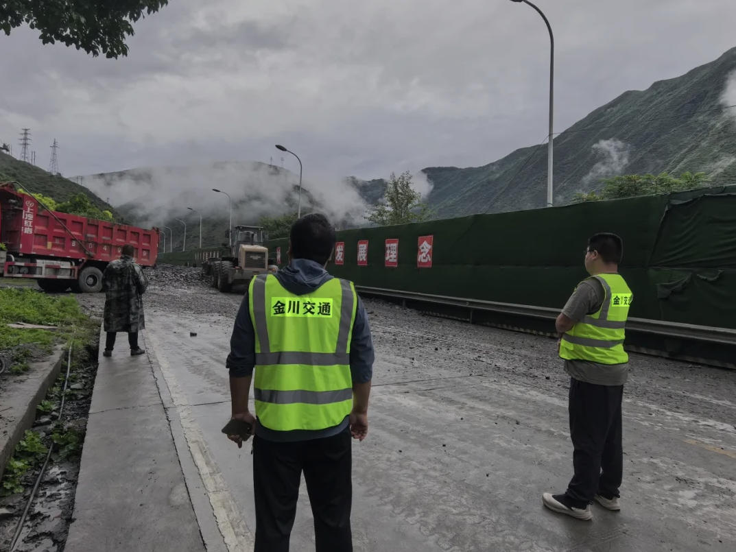 险情就是命令!蜀道集团四川公路咨询公司大渡河金川水电站G248复建公路项目总监办在接到国能大渡河金川水电建设有限公司紧急通知后,立即启动应急预案,组织抢险队伍第一时间赶赴灾害现场,经专业评估后迅速制定抢险方案,组织施工单位调集1台装载机、6辆土方运输车,全力开展抢险作业。为争分夺秒抢通受阻路段,最大限度降低灾害对交通影响,保障人民群众生命财产安全,在持续强降雨和山体落石的危险环境下,采取“双向推进、重点突破”的抢通策略,优先清理关键节点淤积物,同步设置临时警示标志保障抢险安全。经过4个小时的紧张作业,该路段已初步恢复通行。
