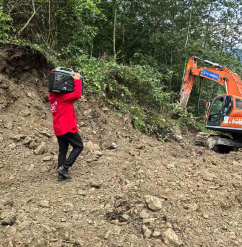 两人将卫星基站固定在背上,踏入及膝深的泥浆。暴雨冲刷下,每步都要拽着电缆线才能站稳。8.7公里路程中,2公里泥泞路段尤为艰难,泥浆裹着碎石灌进鞋里,他们却始终保持着前倾的姿态,像两座移动的基站。