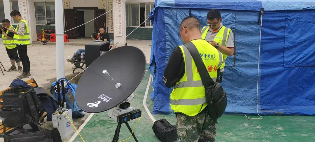 在克服重重困难,跋涉二十公里抵达松潘县小河镇政府后,电信应急抢险队员迅速架设KA卫星基站,并通过卫星通信车、便携基站等设备,为受灾区域提供通信服务。截至5日17时,小河镇高通量卫星Ka设备接入用户达70人,有力保障了应急救援、政府指挥等重要通信需求。