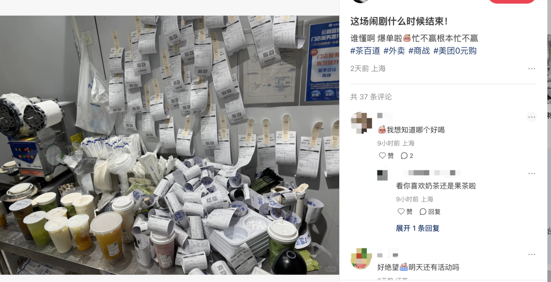 “奶茶店忙到直接显示线上打烊,苦了奶茶店的店员,有个小姑娘一边哭一边打包,我看这情况没买直接走了。”
