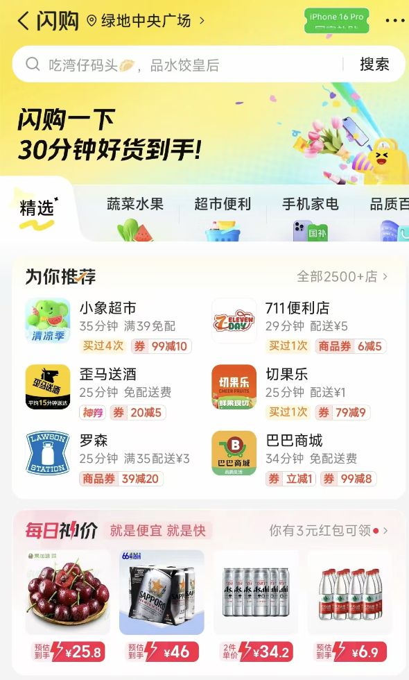 淘宝闪购的优势在于,坐拥淘宝天猫品牌商家的规模优势,通过小时达业务升级后的淘宝闪购业务,进一步打通品牌在天猫官方旗舰店和即时零售货盘价格,借助饿了么“最后三公里”的履约能力,给到消费者“电商的低价,即时零售快速送达”体验。