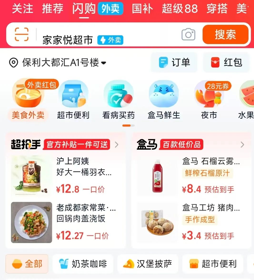 淘宝闪购则推出了“满16减16”“满25减21”的外卖优惠券,以及“满18减18”新人专享红包。剁椒Spicy发现,在淘宝闪购的界面,还出现了盒马的身影。