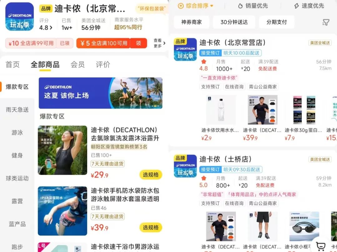 迪卡侬方面表示,当前迪卡侬通过与美团、淘宝等平台的深度合作,形成差异化优势,依托“门店库存+即时配送”的模式,实现从用户下单到商品交付的全链路可视化。