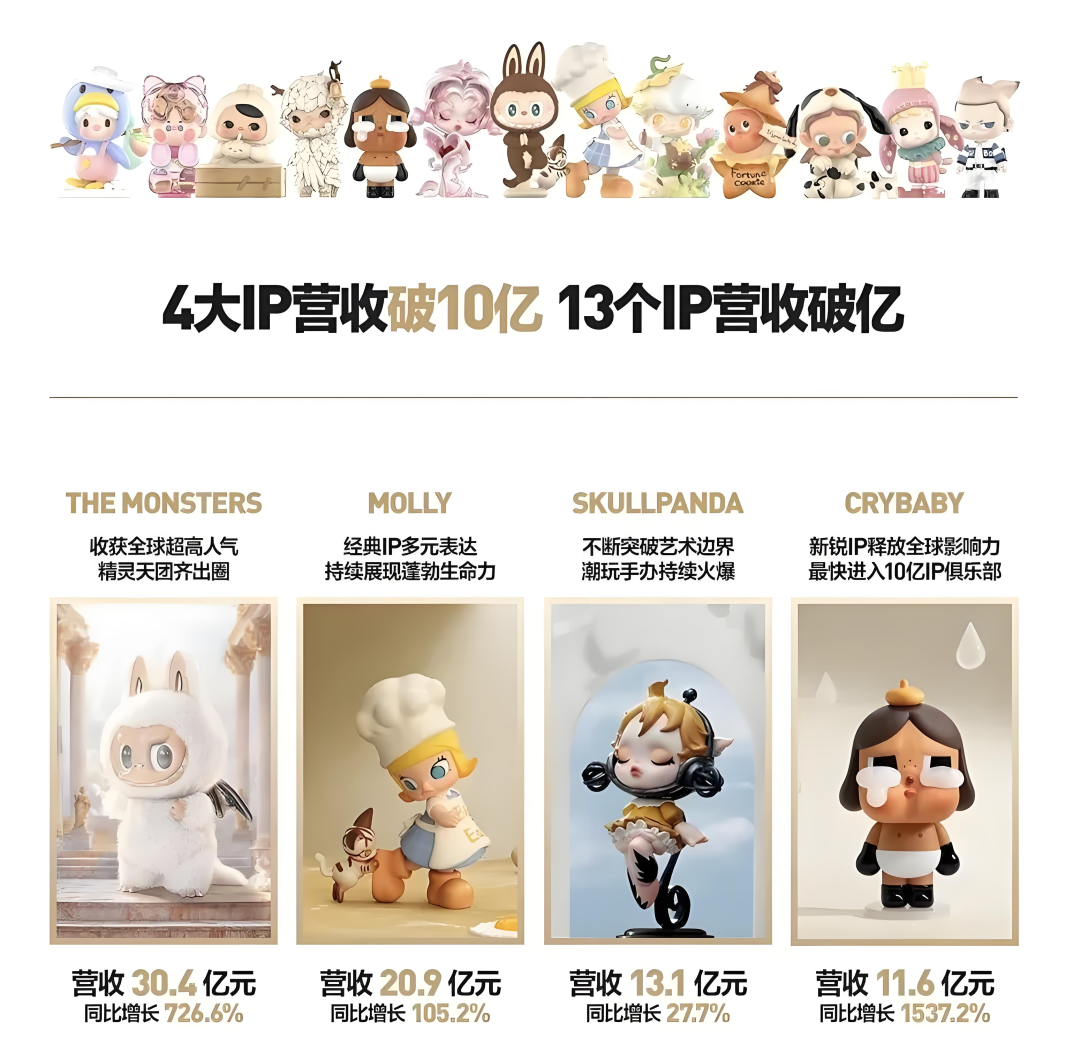 而另一方面,以打造IP的视角反观各个加入赛道的玩家,新入局者们似乎都渴望着一次泡泡玛特式的成功。