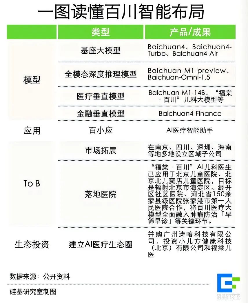 在模型技术侧,据「蓝鲸新闻」报道,停止预训练新超大规模通用大模型后,百川加速垂类模型的构建。今年1月,百川开源了行业首个医疗增强大模型Baichuan-M1-14B,3月发布了全球首个儿科大模型。