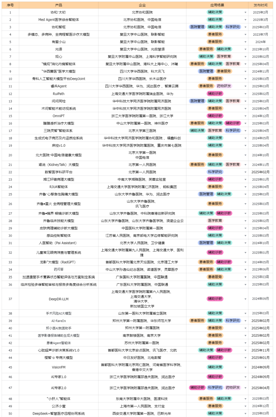据机构「动脉网」数据,截至今年4月,统计第三方榜单中国内排名前100的医院,已有98家对外宣称完成了大模型部署,而且有近四成医院在通用模型的基础上进一步展开研发,打造出符合自身需求的垂直医疗模型。