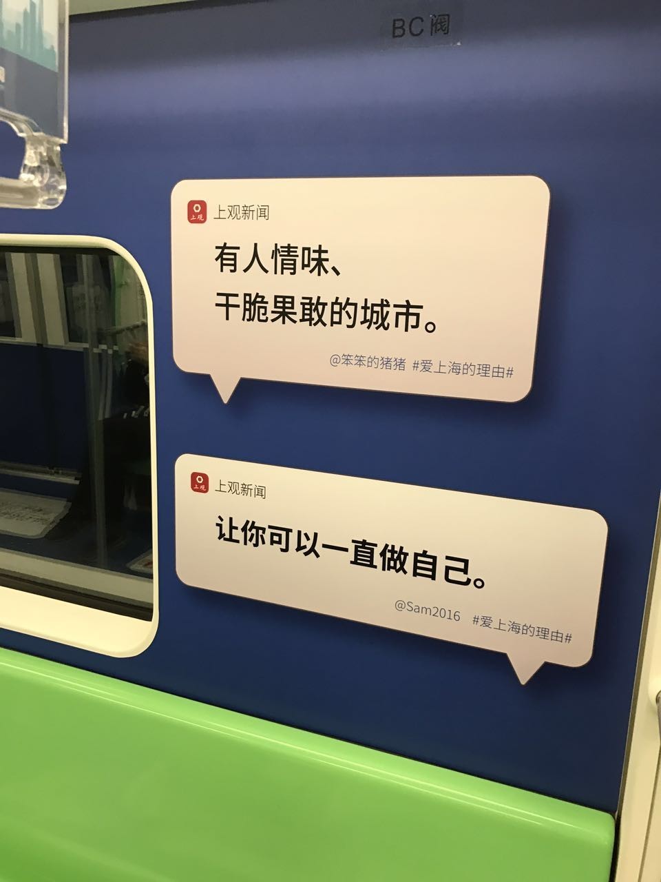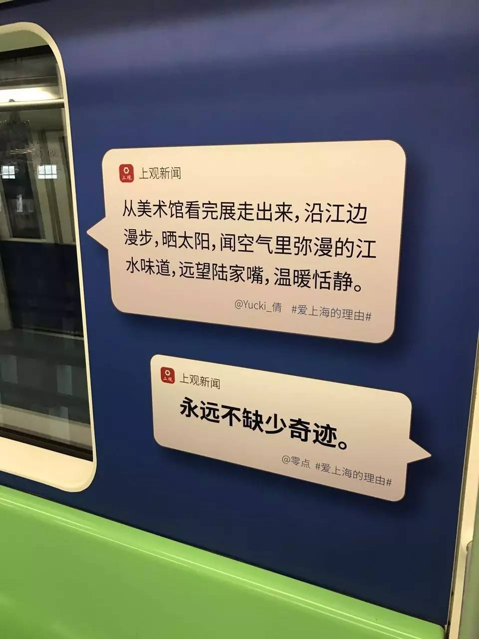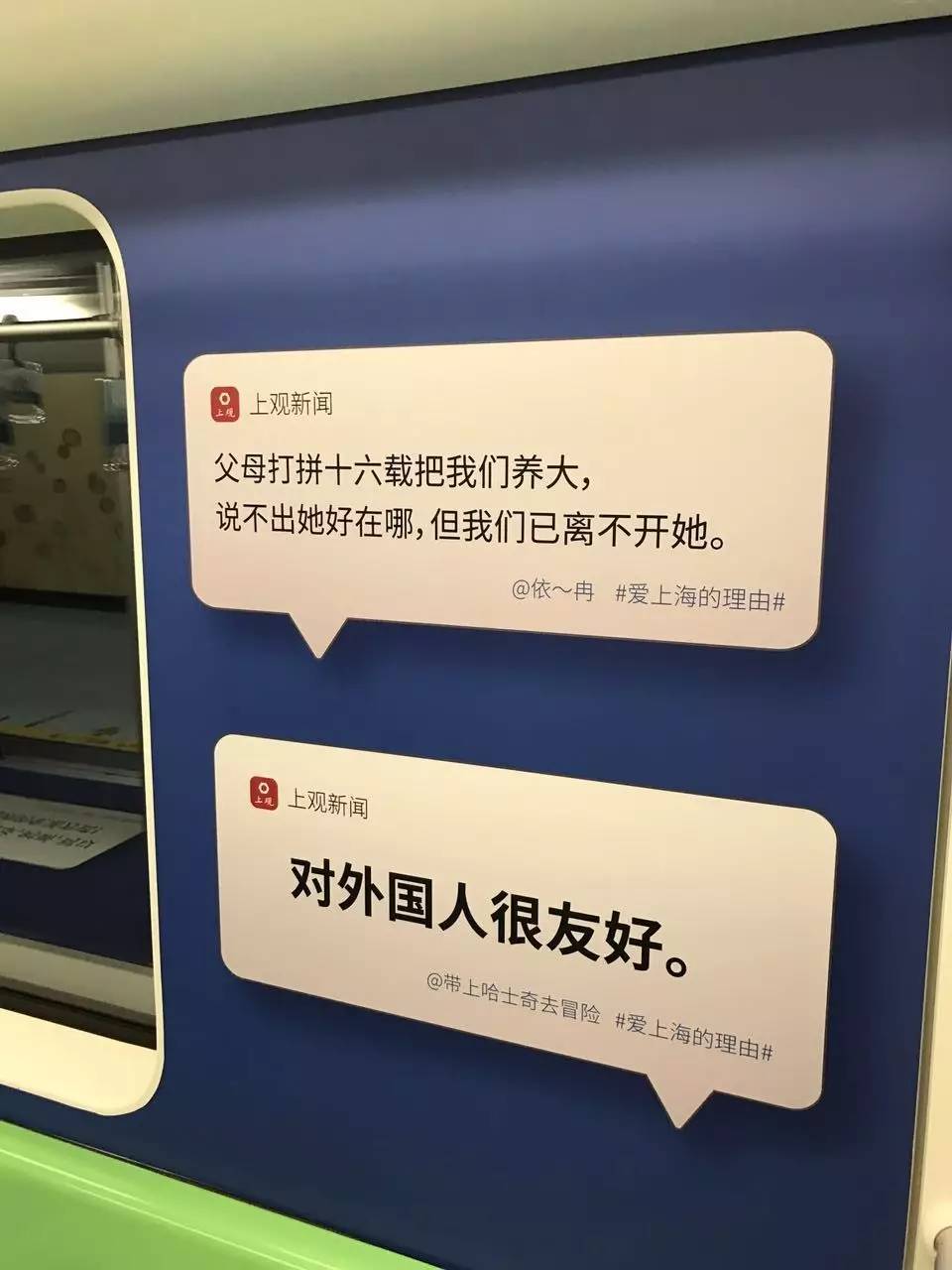 乘坐这样的地铁,让我很有归属感。人总有情绪低落的时候,看到有些话会振奋精神。