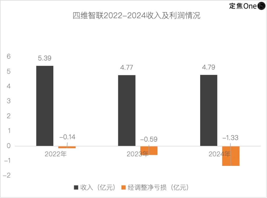 当收入停滞遇上成本飙升,四维智联变得“越亏越多”:三年累计亏了8.47亿,2024年单年亏损达3.78亿。