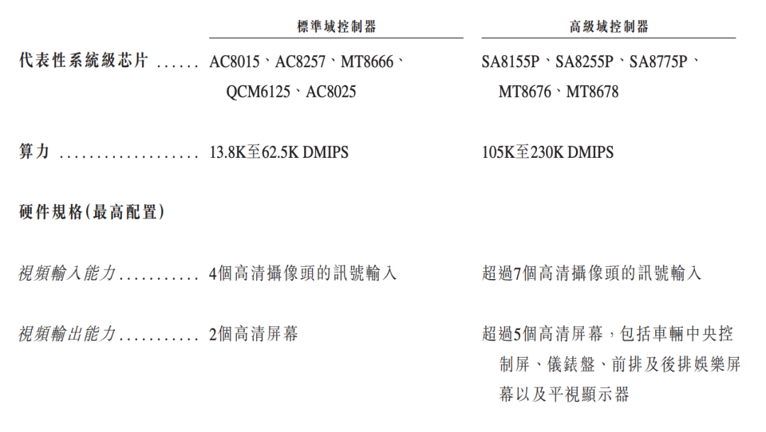 低端芯片(标准域控制器所需的芯片)依赖股东四维图新旗下杰发科技(AC、QC系列芯片);高端方案(舱泊一体、驾舱一体解决方案)则依赖高通和联发科(SA8155P、MT8676等系列芯片)。