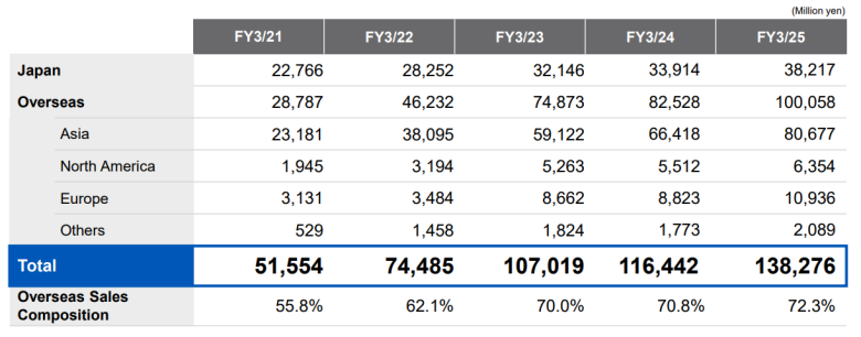 在截至2025年3月31日的12个月,尤尼克斯2025财年全年净销售额同比增长18.8%至1382亿日元,创下历史新高;营业利润同比增长22.1%至141亿日元;净利润同比增长19.6%至105亿日元。
