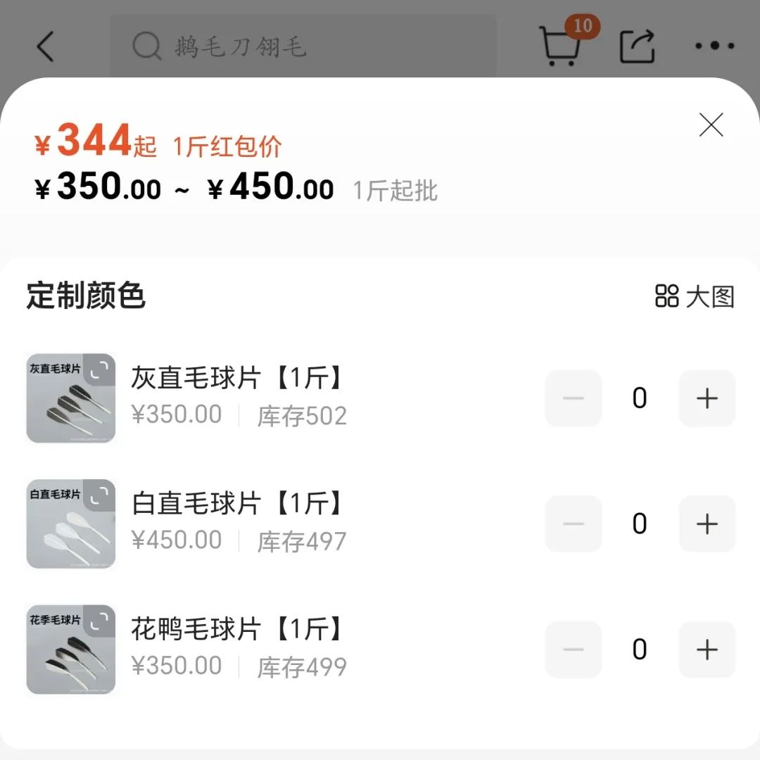 据多家媒体早前报道,2023年年底,羽毛球最主要的原材料刀翎批发价每斤在200元左右,2024年已突破300元/斤。据源Sight观察,目前各平台羽毛球片价格批发价格基本来到350-450元/斤,涨幅高至50%。