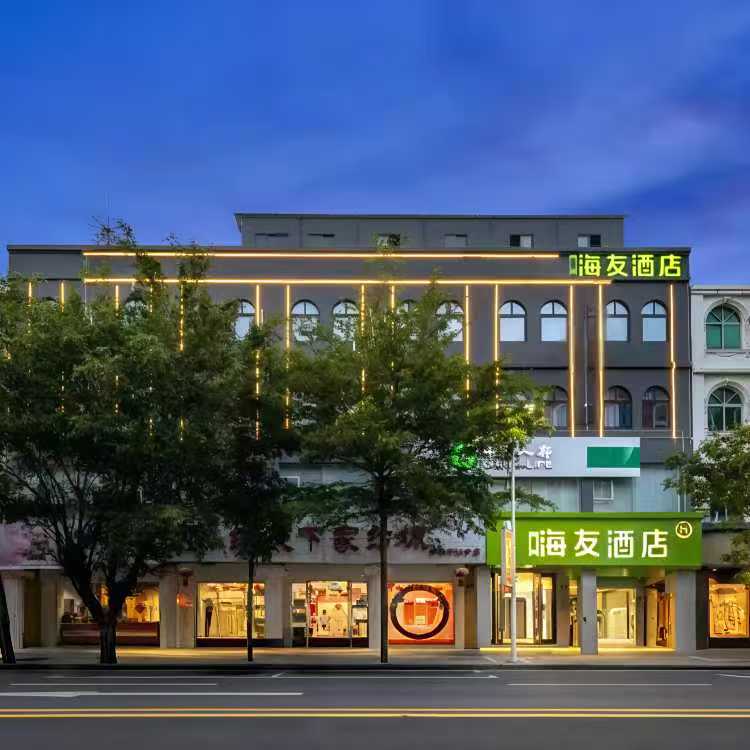 从店招广告中可以看到,“嗨友酒店”与海友酒店的logo几乎相同,“嗨”字中的偏旁“口”,似乎为后续加上去的内容。而从评论配图和留言来看,这家酒店在之前就是海友酒店的加盟店。