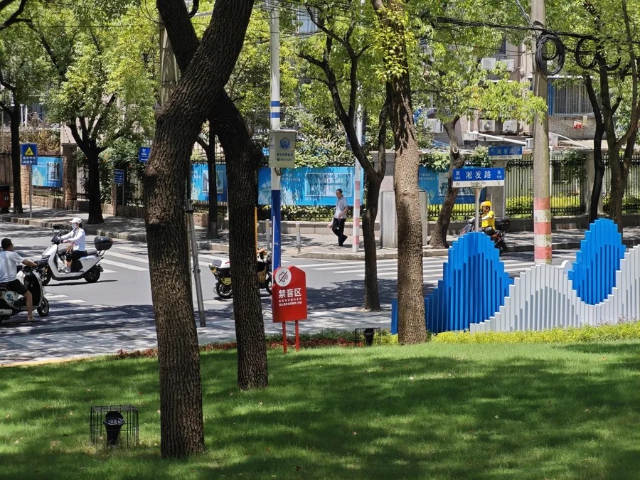 为此,公园将临近居民区的一块围合区域设置为噪音敏感控制区,保安巡逻时会重点关注,一旦发现不文明行为及时劝阻。一块块印着“此区域范围内全天禁止使用各类音响、乐器”的红底白字的标牌也很醒目。
