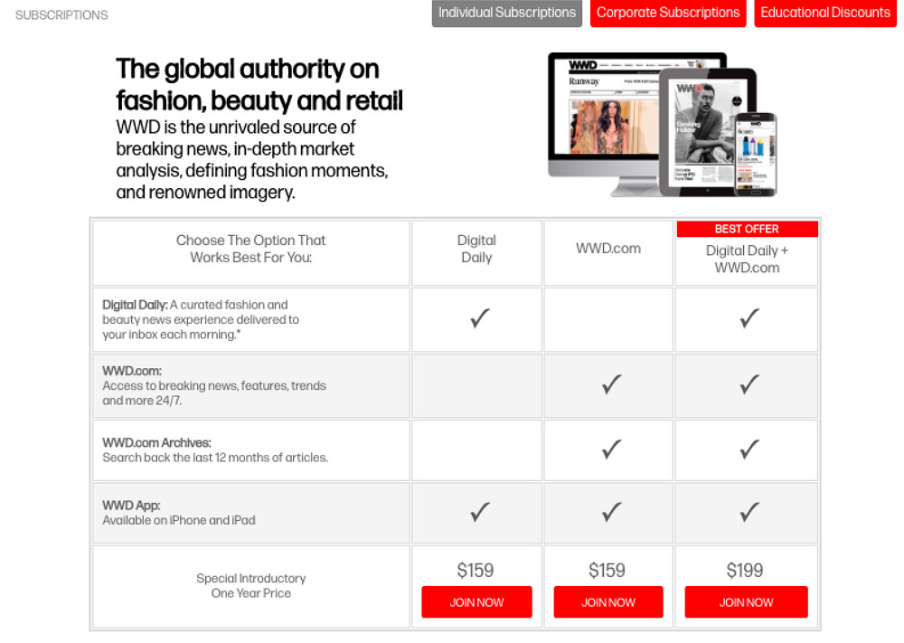“现在,我们的订阅还是专注在英文网站上,可以提供免费和订阅内容。当我们继续深入中国读者,也会寻求提供中文订阅内容的可能性。”WWD对界面说。