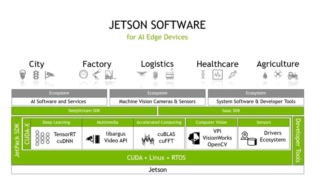 英伟达的边缘计算平台和AI领域一样,它不止是一颗GPU,而是由硬件、工具链、套件组成的全套生态,并共享底层的CUDA生态。用户迁徙成本极高 ,锁定效应极强。