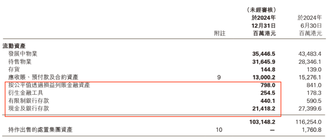 同期,其金融资产约8亿港元、衍生金融工具约3亿港元、现金及银行存款214亿港元,合计约225亿港元。即便加上4亿港元的有限制银行存款,公司还有约97亿港元的资金缺口。
