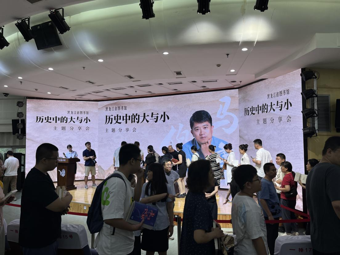 此次马伯庸哈尔滨之行安排紧凑,足迹遍布中央书店、省图书馆、哈尔滨市工人文化宫三处文化地标,场场活动皆现场爆满。7月9日下午,黑龙江省图书馆报告厅座无虚席。马伯庸围绕“历史中的大与小”这一主题侃侃而谈。