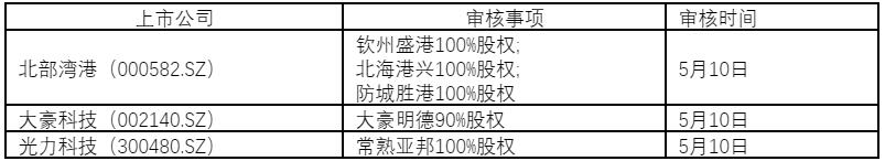 截至5月5日,中国证监会并购重组委员会安排5月8日-12日的重组审核事宜如下: