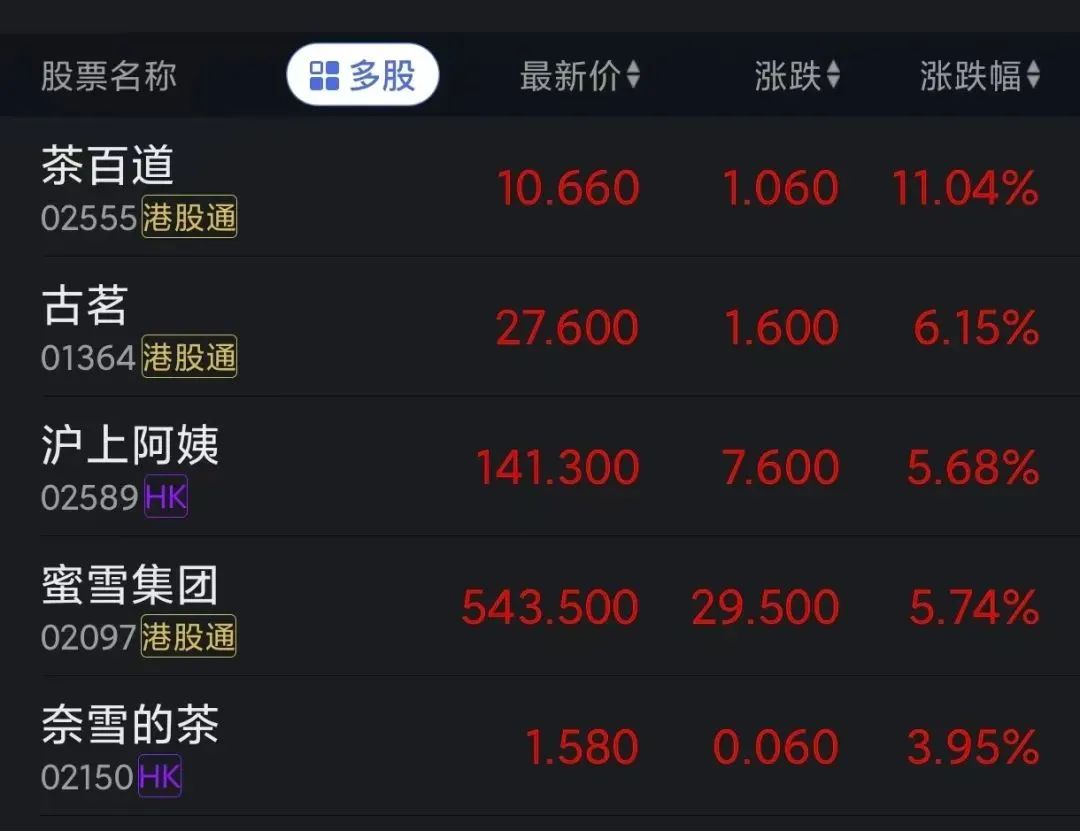 其中,阿里巴巴股价当日收盘下跌超2%。而蜜雪集团股价涨5.74%、茶百道上涨11.04%、古茗上涨6.15%。加上瑞幸咖啡、霸王茶姬等上市公司,这些现制饮品公司的市值上涨总额,十分接近外卖平台的下跌总额。
