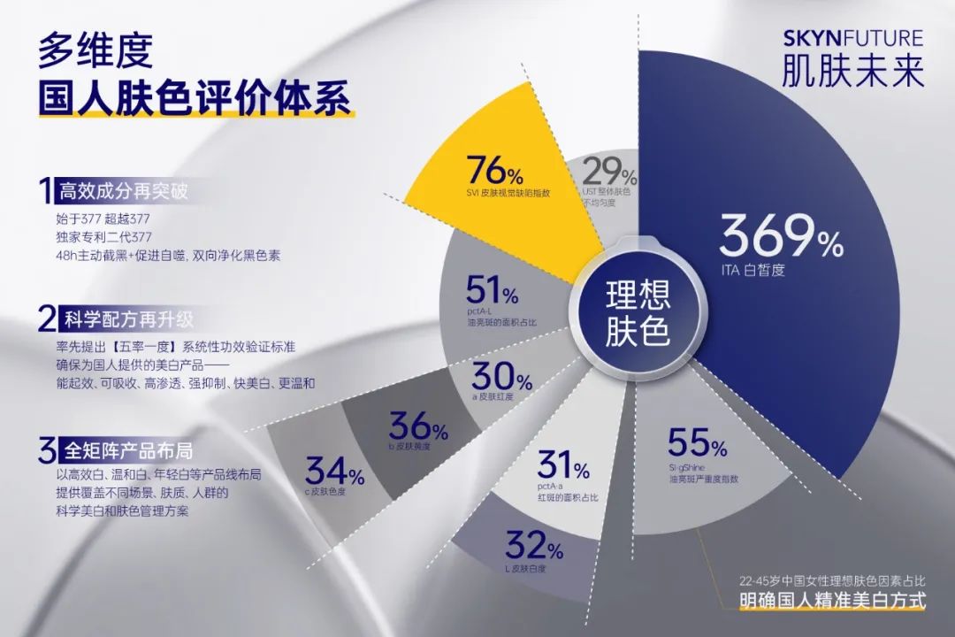一是,通过皮肤美白科学底层研究,深入探索不同场景、不同人群的美白机制和网络结构。