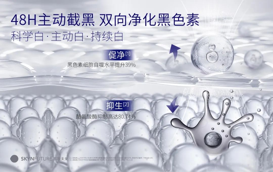 简单地说,就是从如黑色素阻断等单向美白通路,变成相对系统的干预方案。这点在近年美白产品的卖点宣称中,最为明显。