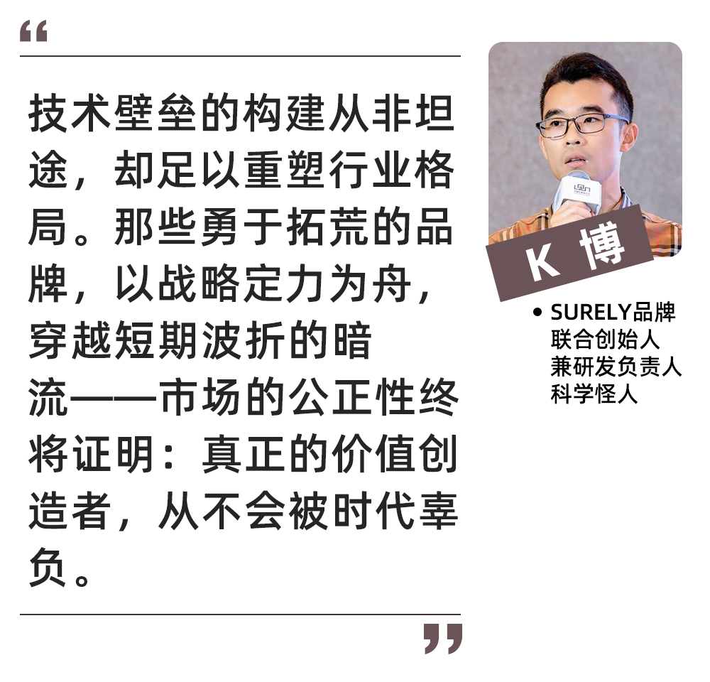 而在此过程中,在K博看来,很重要的一点是,“品牌需要做出一些差异化的技术研究,并提出可能的更科学技术路线,并成功地把技术转化落地到产品上。”