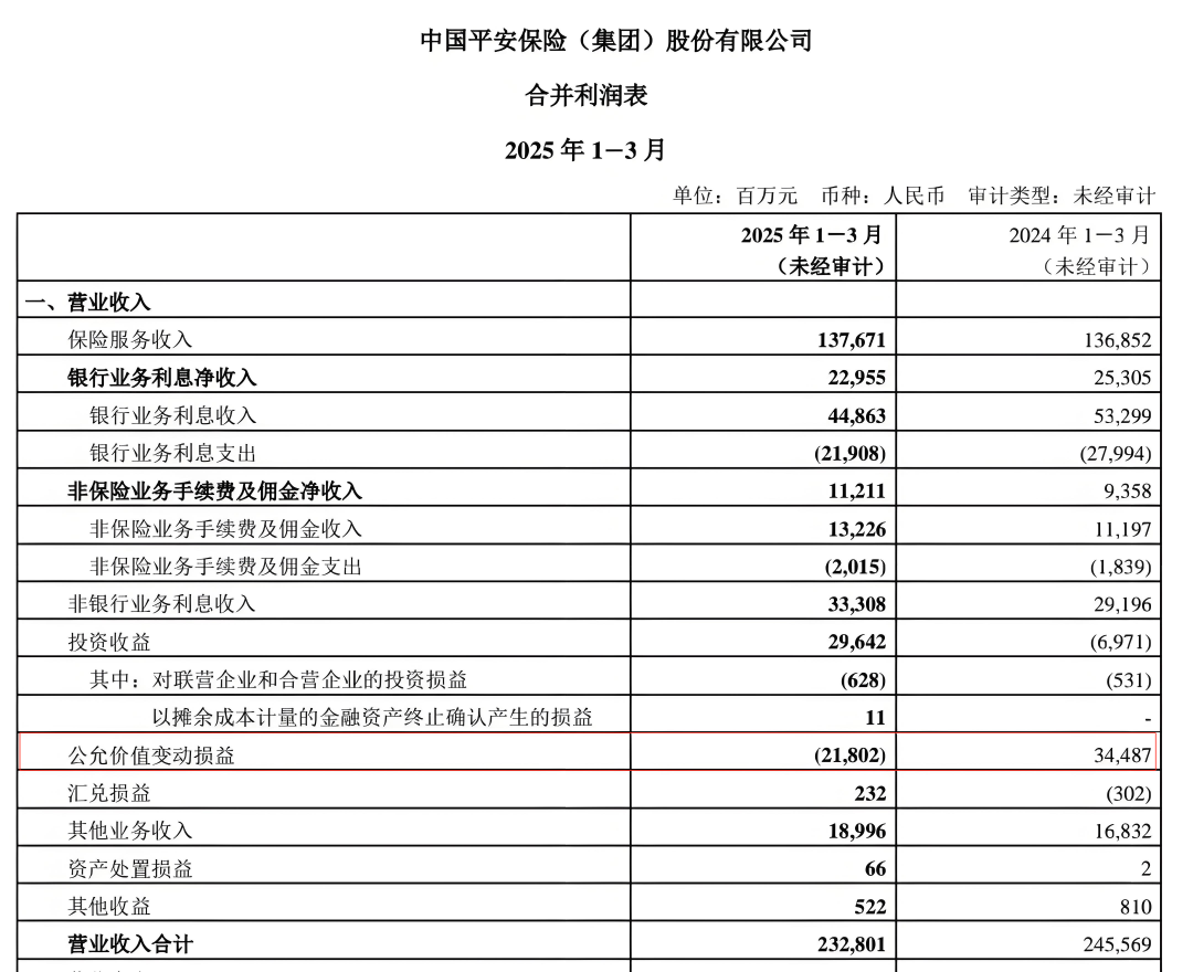 具体来看,中国平安一季度公允价值变动损益为-218.02亿元,而2024年同期为344.87亿元,两者差额达到562.89亿元;中国太保一季度公允价值变动收益16.55亿元,而2024年同期为151.04亿元,两者差额134.49亿元。这些变化均对险企净利润表现带来直接影响。