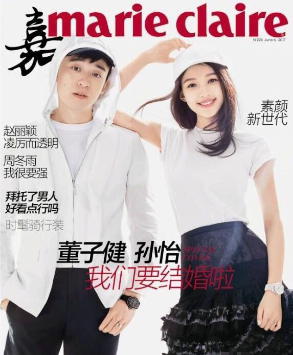 近日,董子健与孙怡为时尚杂志《嘉人》拍摄的一张封面大片曝光,主题为“我们要结婚啦”,疑似宣布婚讯。