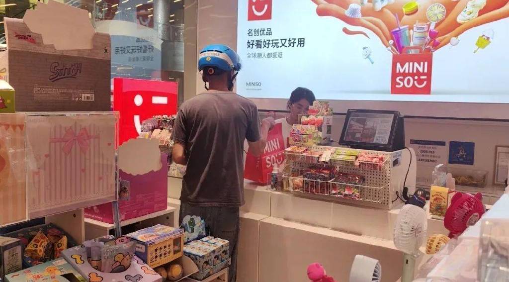 不同于热火朝天的奥乐齐生鲜超市,名创优品、KKV等潮流精品零售店似乎未被“战火波及”。白玉兰广场和北外滩来福士的名创优品和KKV尽管都已上线了各平台的“闪购”频道,但走访期间,记者仅见到一名饿了么骑手来取货,而且由于外卖订单量少,这些店铺不需要设置货架,销售员直接现场取货和打包。