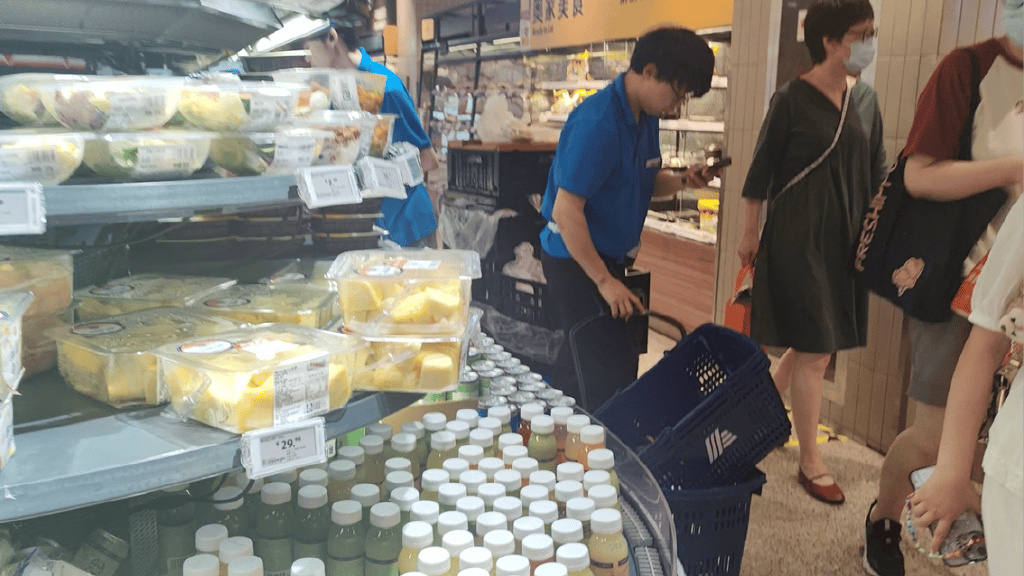从拣货员穿梭在超市各个角落、片刻不停的身影里,不难感受到这场零售战事的激烈。在超市停留的40分钟里,记者粗略估算,一个拣货员至少在货架和货舱之间往返了八九趟。