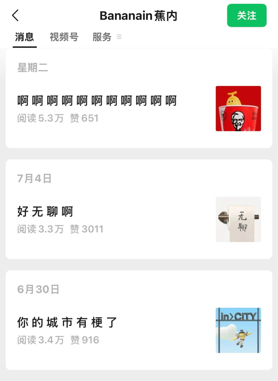 从公众号的运营痕迹来看,蕉内的标题、文案以及其中的视觉表达,基本对标了内容自媒体中的第一梯队——曾经的GQ实验室,而它的效果也是显而易见的。