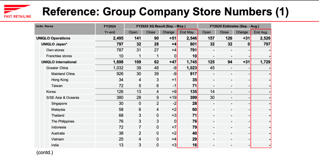 优衣库的开关店情况 | 来源:优衣库2025年三季度报