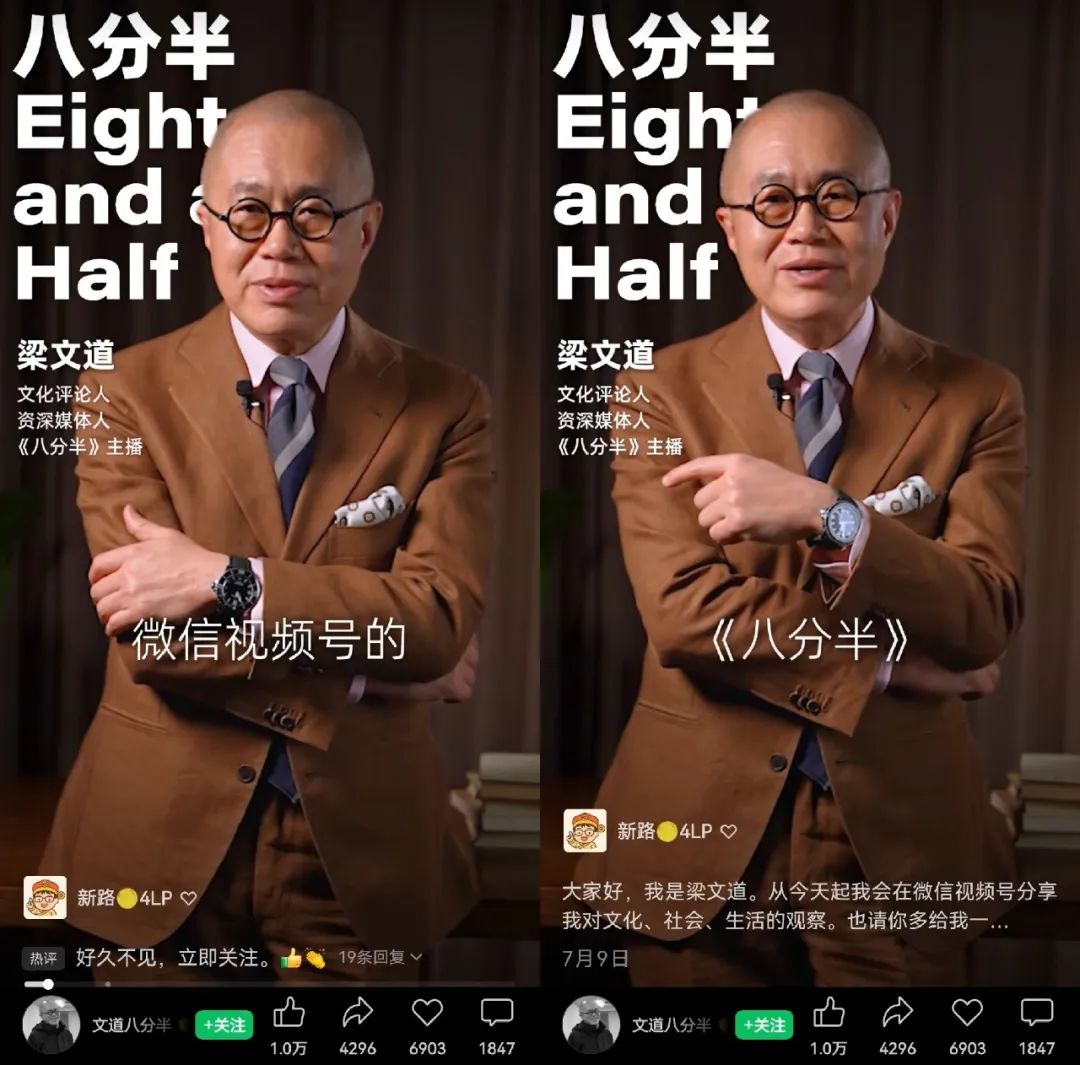 微信视频号本身也在测试更长形式的谈话类内容,几乎在B站高调宣布视频播客几乎的同一时间,梁文道带着他的单口付费播客节目八分半正式入驻了视频号,很难说这仅仅只是巧合。