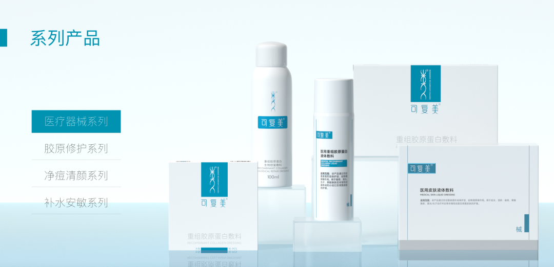 以重组胶原蛋白技术为核心的可复美,其面膜、爽肤水、喷雾、乳液等产品,在医美机构、医院皮肤科的渠道渗透率颇高。创福康、敷尔佳、芙清等品牌,也在该领域深耕。还有国际品牌如倩碧,也推出CX系列 “械字号冷敷贴 + 妆字号精华” 组合,切入光电项目护理领域 。