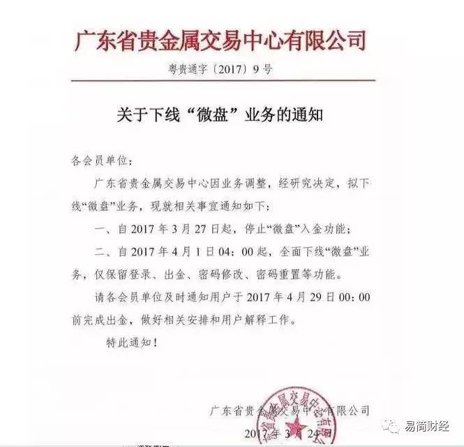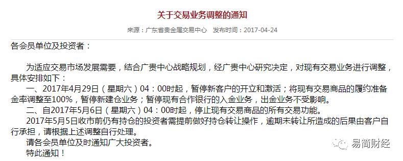 4月24日,广东省贵金属交易中心通知,从5月6日4点开始,将停止现有交易商品的所有交易功能。
