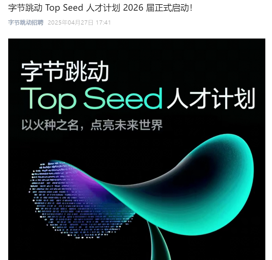 天眼查媒体综合信息显示,例如,字节跳动通过Top Seed等专项计划,加码吸引高潜年轻人才,开出远超市场均值的实习薪酬,并搭配顶级导师资源与充足算力支持,构建起一套系统的人才招引与培养机制。
