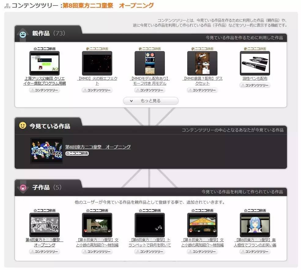 《第8回东方Nico童祭OP》就把ZUN(东方系列原作者)的视频登记为了父作品