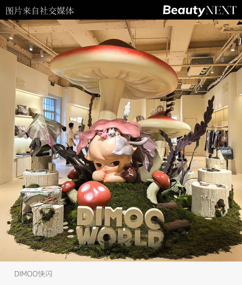 2025年2月,Hirono小野全球首店落地上海中环广场,以“美好药店”为主题,成为泡泡玛特旗下第一个拥有独立店铺的IP。此外,泡泡玛特旗下另一个IP「DIMOO」也在2024年开启了快闪店策略,同时通过服饰、香氛等生活品类渗透日常。