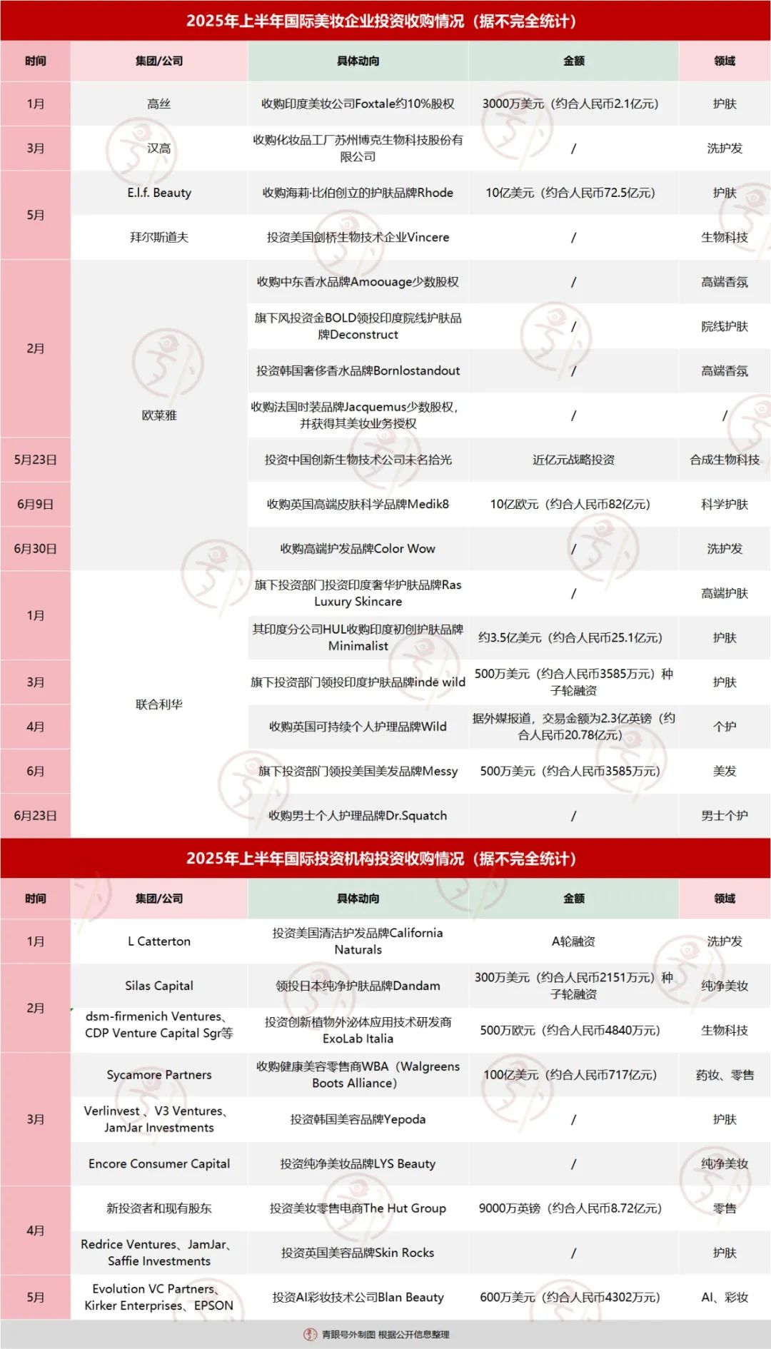 与此同时,韩国市场同样吸引了国际资本,上半年共完成3起重要交易,涉及高端香氛、彩妆及洗护发等领域,总交易估值超过44亿元人民币。