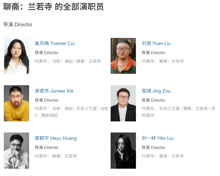 答案就藏在5个改编故事背后的6个导演之中——其中4位是因《聊斋:兰若寺》第一次做动画导演。
