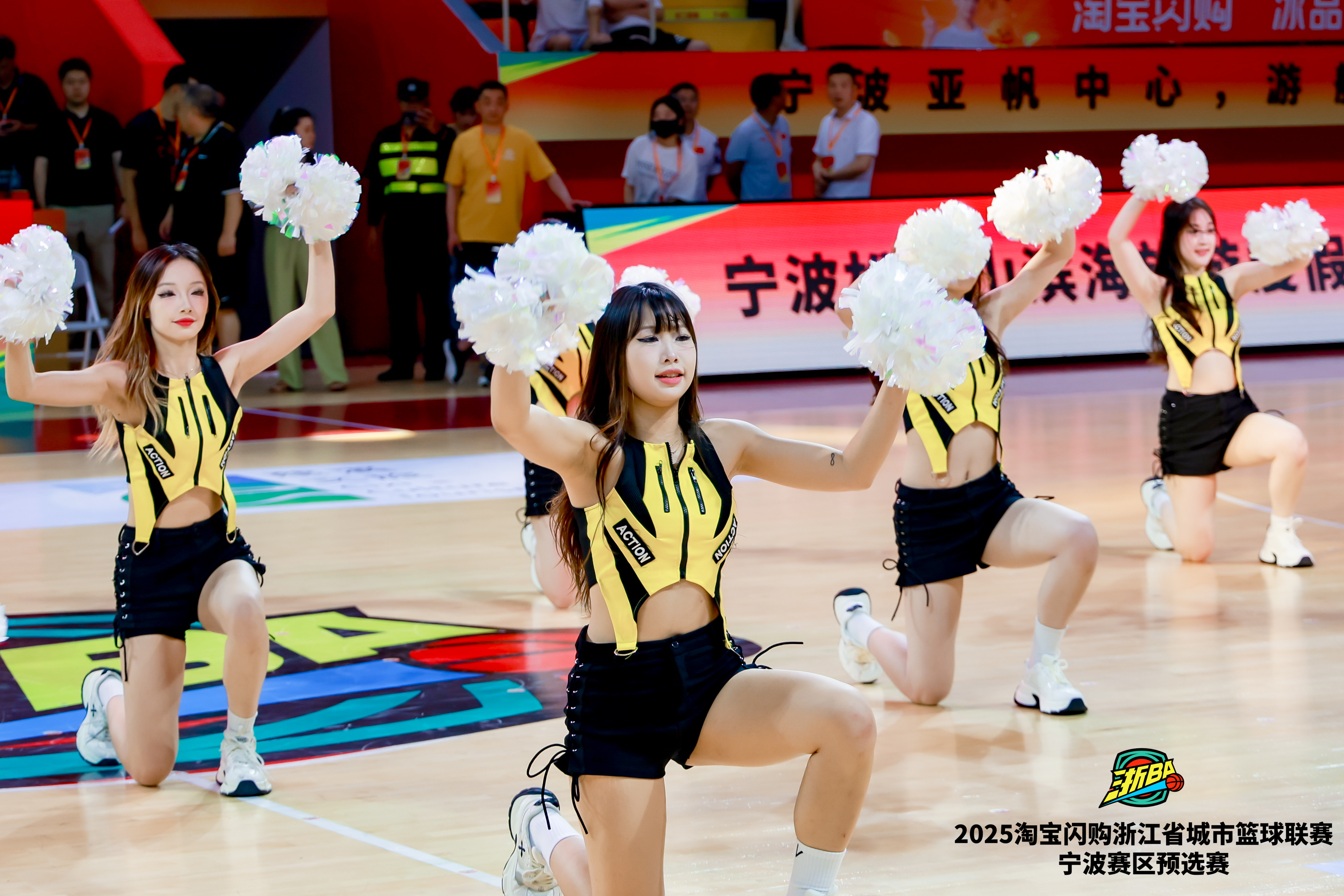 紧接着,宁波腾飞拉拉队以一段高难度的啦啦操将气氛推向顶点。她们身着荧光色队服,托举、空翻、叠罗汉,动作行云流水,引得观众连连惊呼。作为CBA宁波富邦队的官方合作拉拉队,这支年轻的团队用专业与热情诠释了“篮球+娱乐”的魅力。