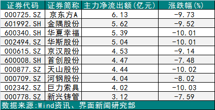 京东方A(000725.SZ)、金隅股份(601992.SH)、华夏幸福(600340.SH)的主力净流出额高居两市个股前列,分别为6.13亿元、5.62亿元、5.39亿元。今日,雄安概念股遭遇主力资金大幅抛售,除金隅股份、华夏幸福首当其冲之外,京汉股份(000615.SZ)、首创股份(600008.SH)、河钢股份(000709.SZ)等主力资金均大面积出逃,其主力净流出额分别为4.53亿元、4.47亿元、4.04亿元。