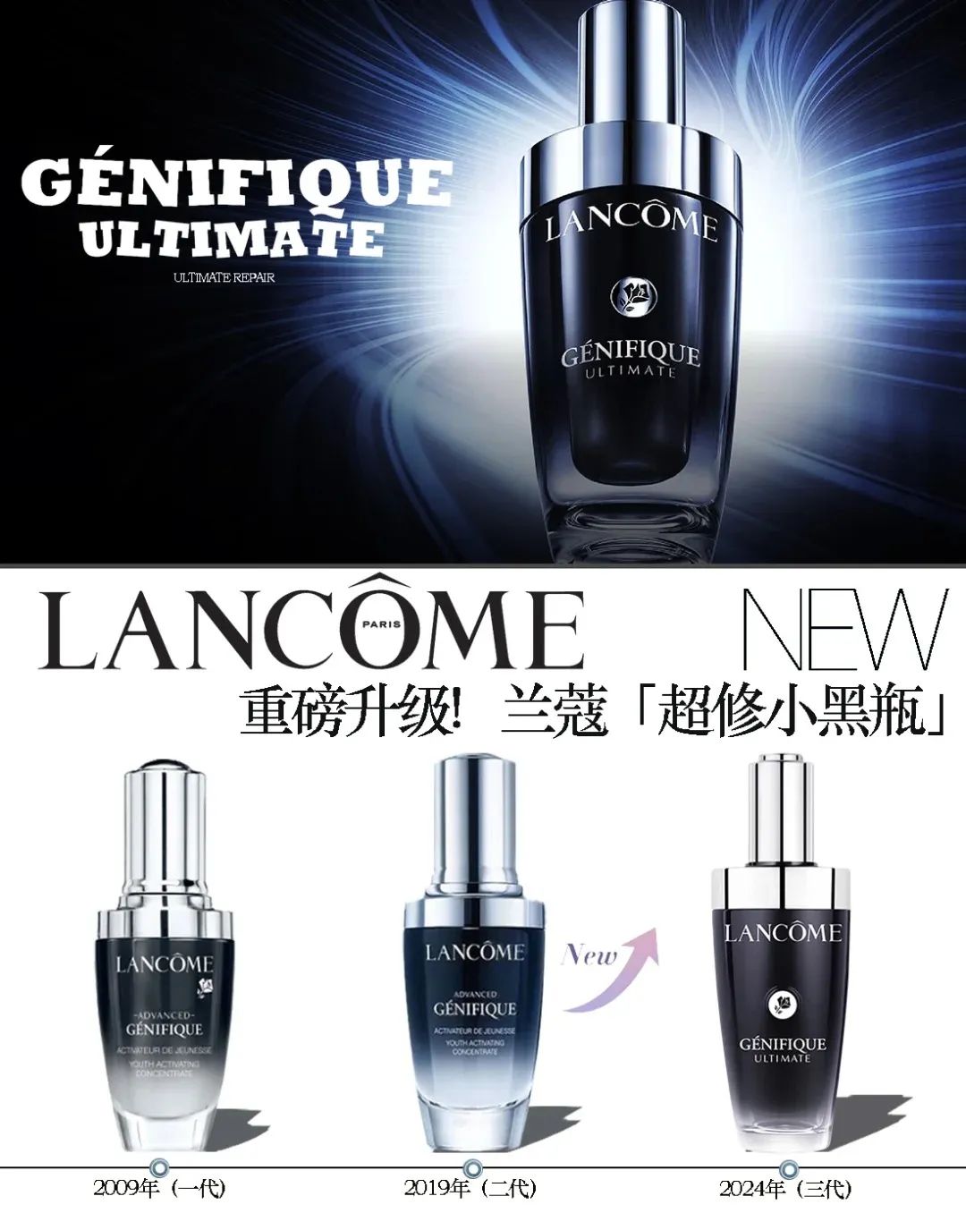 2024年面世的进阶版兰蔻的超修小黑瓶精华,也是发酵护肤的明星产品之一。小黑瓶中添加了二裂酵母发酵产物溶胞物,这是由双歧杆菌培养、灭活及分解得到代谢产物、细胞质片段、细胞壁组分及多糖复合体。