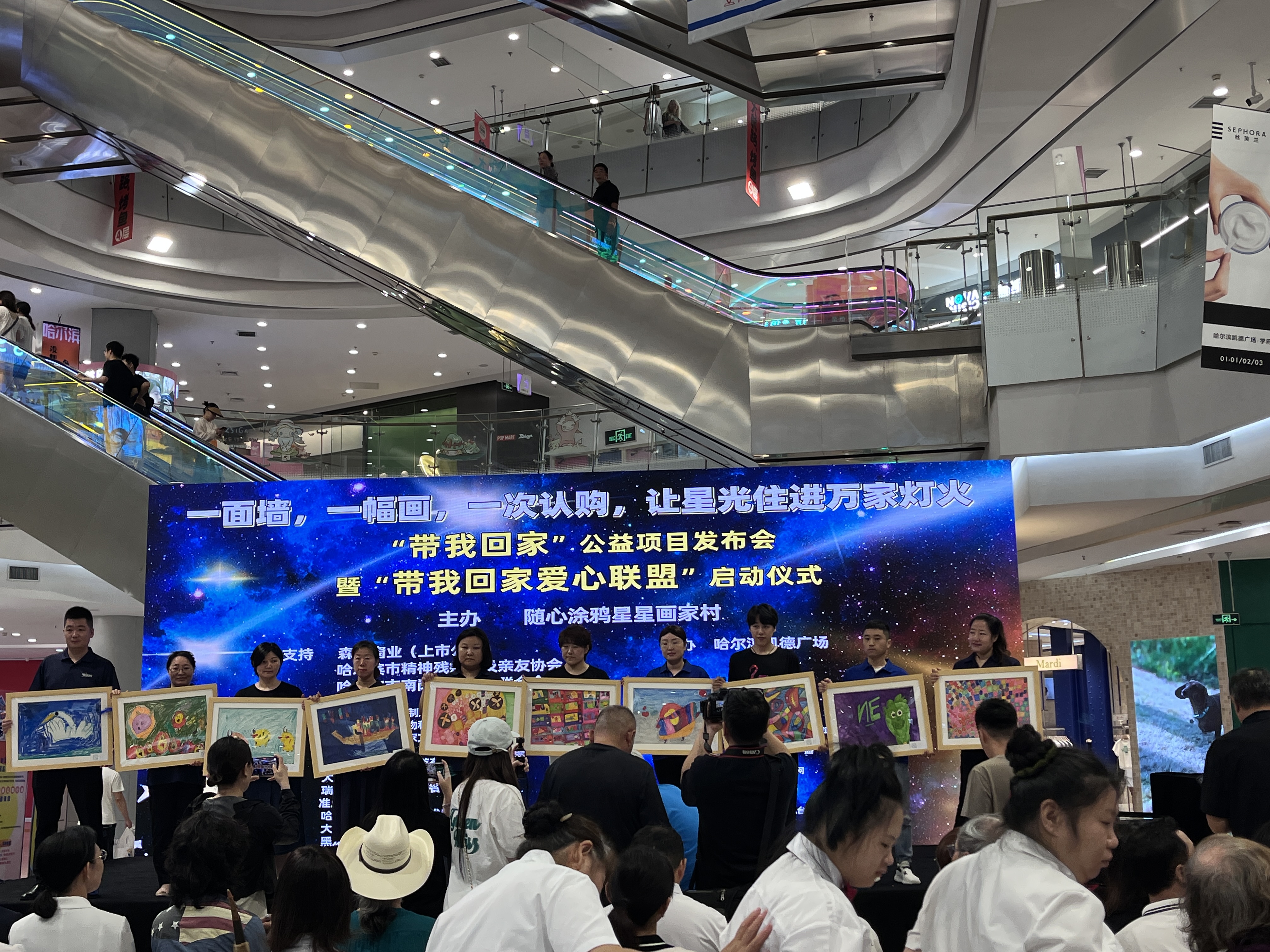 2025年7月17日,哈尔滨凯德广场迎来了一场别开生面的公益项目启动仪式。由“随心涂鸦星星画家村”发起,并联合首批11家本地爱心企业共同组建的“带我回家爱心联盟”宣告成立。旨在为孤独症等心智障碍青少年的艺术作品搭建展示平台,让它们被看见、被珍视,并走进千家万户。