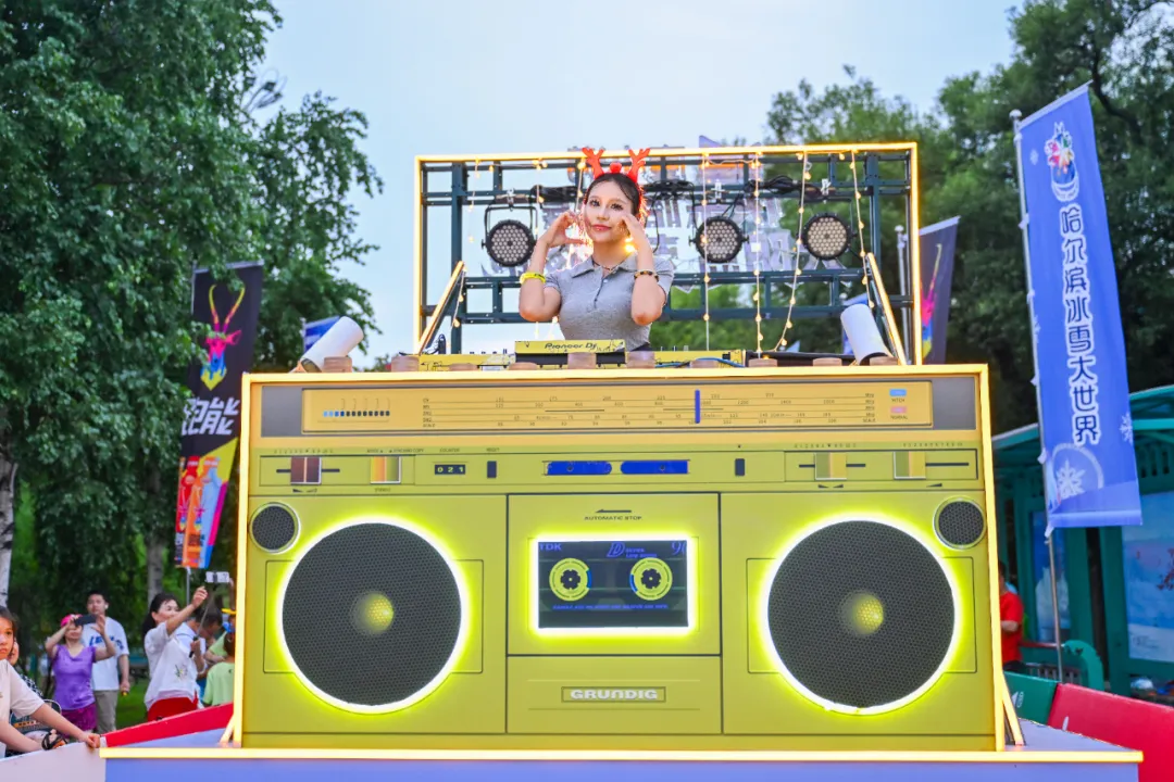 随着发令声响,跑友们身着荧光装备,沿着既定路线出发,开启浪漫夜跑。音乐引导车在前方引领,DJ全程跟随互动,点点荧光手环汇成流动的星河,在太阳岛迷人的夜色中穿梭。跑友们或三五成群,或携家带口,欢声笑语与动感音乐交织,构成了一幅活力四射、温馨浪漫的夏夜画卷。