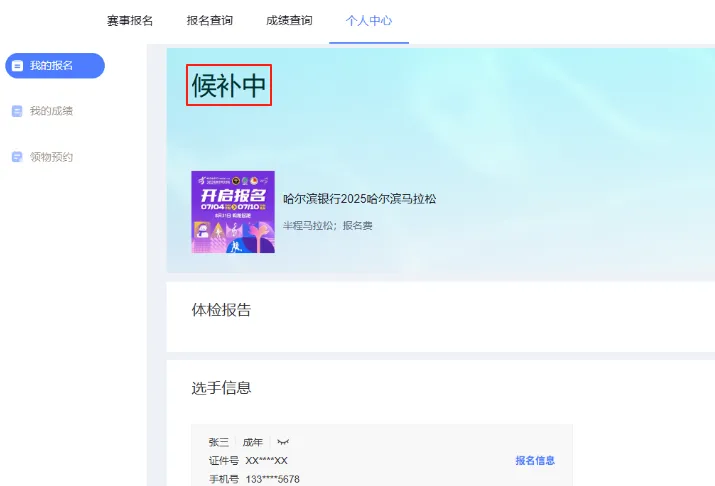 进入官网,依次点击【立即报名】-【个人中心】-【我的报名】,可看到【恭喜您,已中签】【很遗憾,您未中签】【候补中】字样,代表不同的抽签结果。