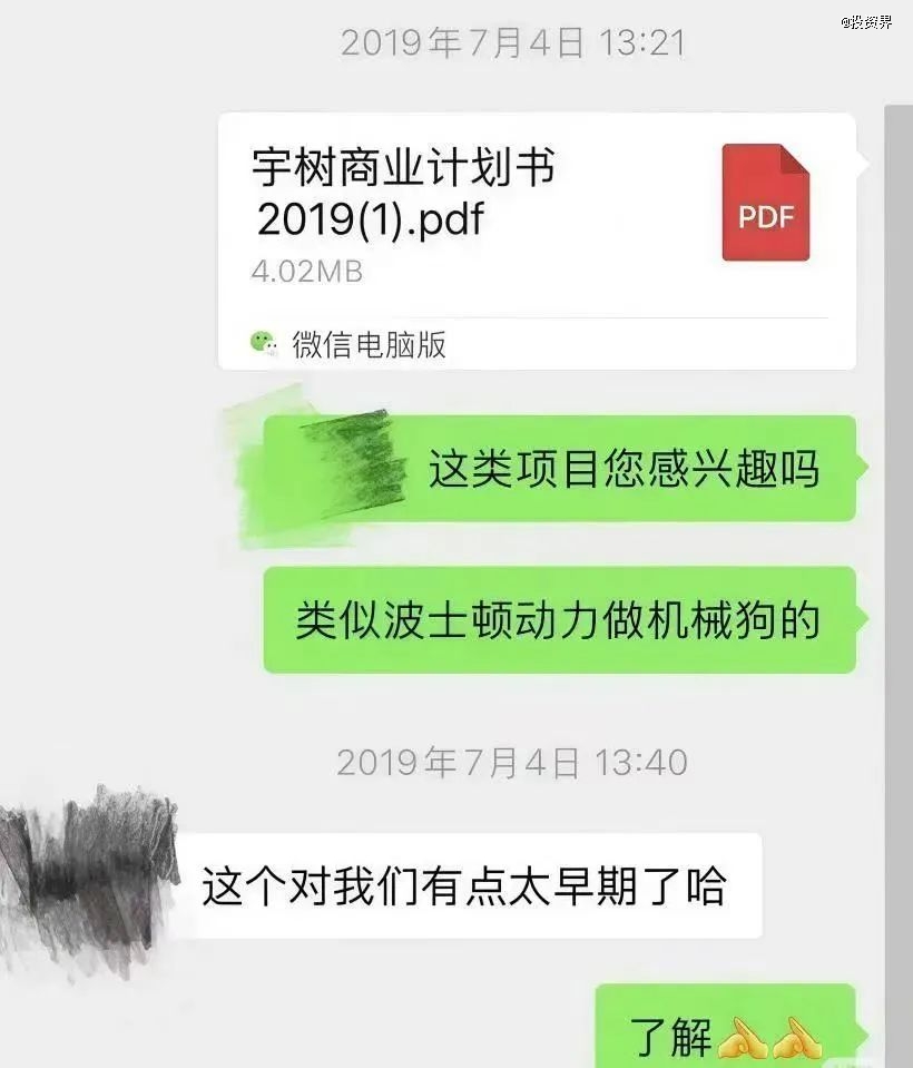 正如一份流传甚广的聊天截图里,早年VC拒绝了宇树的BP,理由是太过早期。