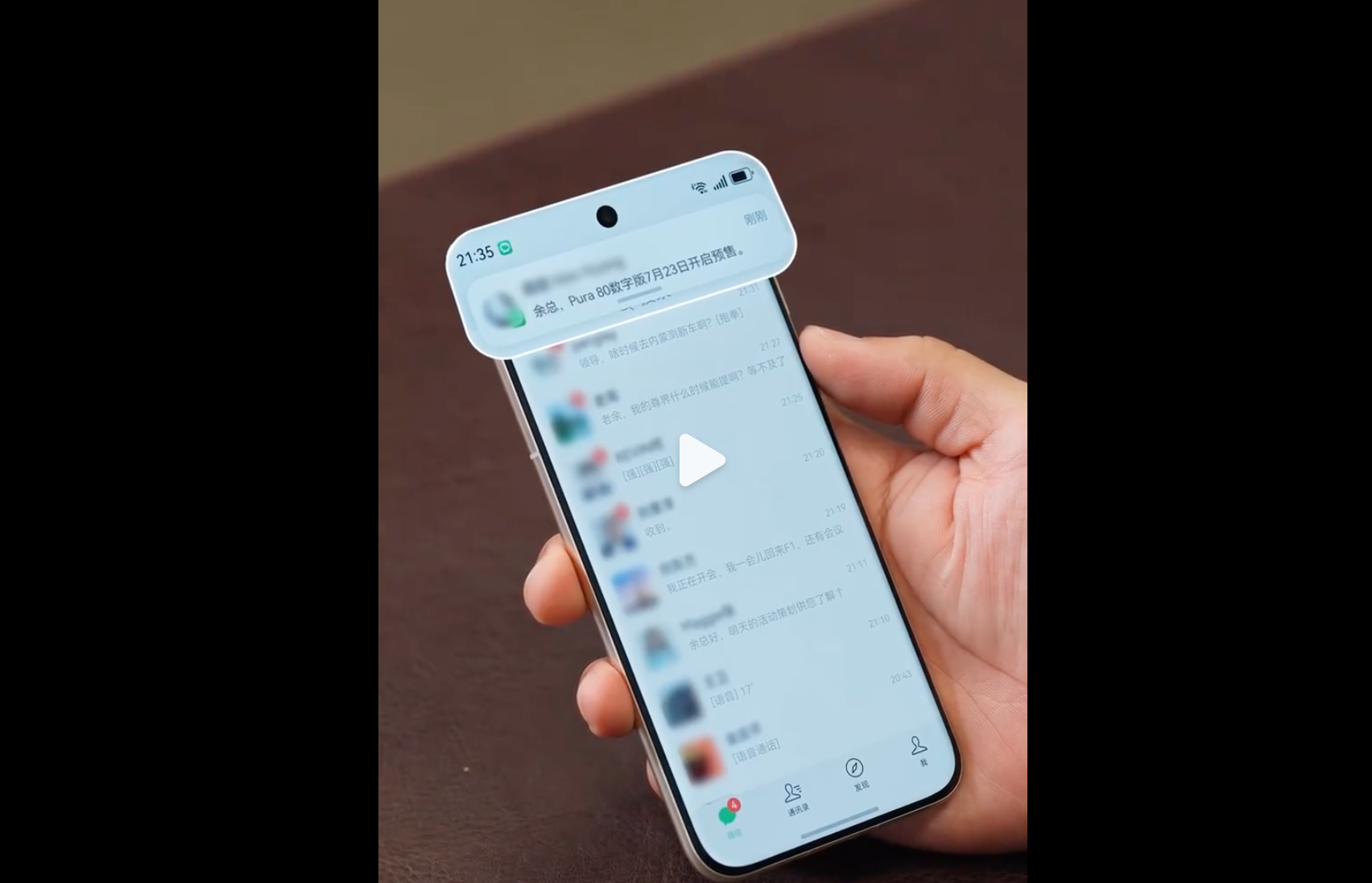 7月20日晚,华为常务董事、终端BG董事长余承东在社交平台发布一段视频介绍鸿蒙系统的屏幕防偷窥设计。视频中手机收到的通知信息显示,“余总,Pura 80数字版7月23日开启预售。”这意味着华为Pura 80标准版手机预售在即。